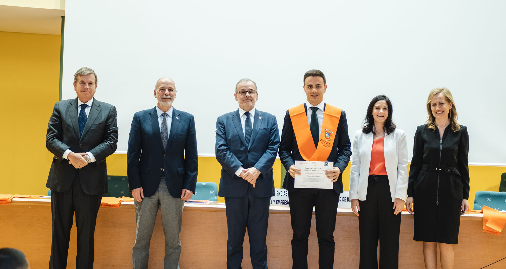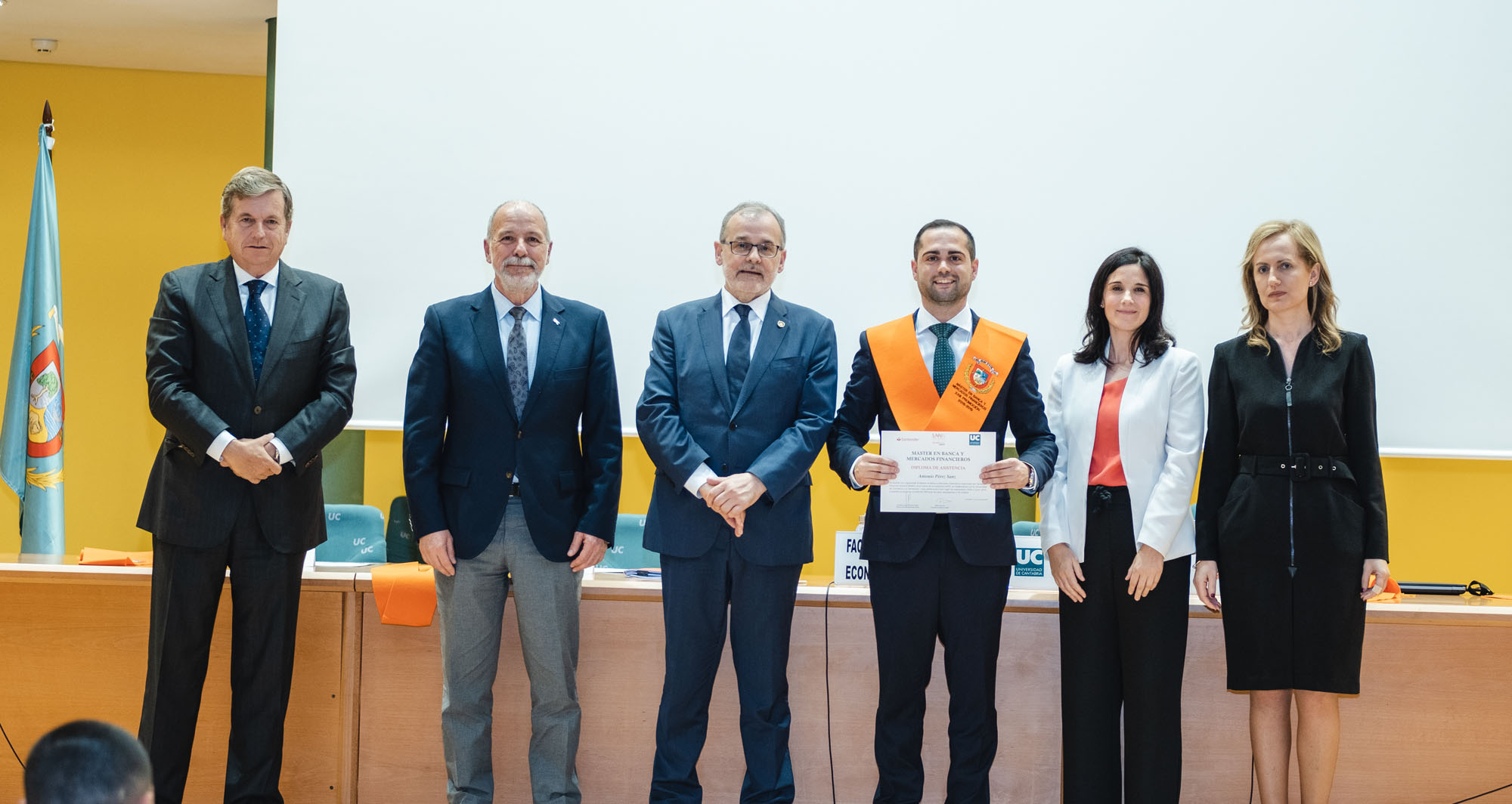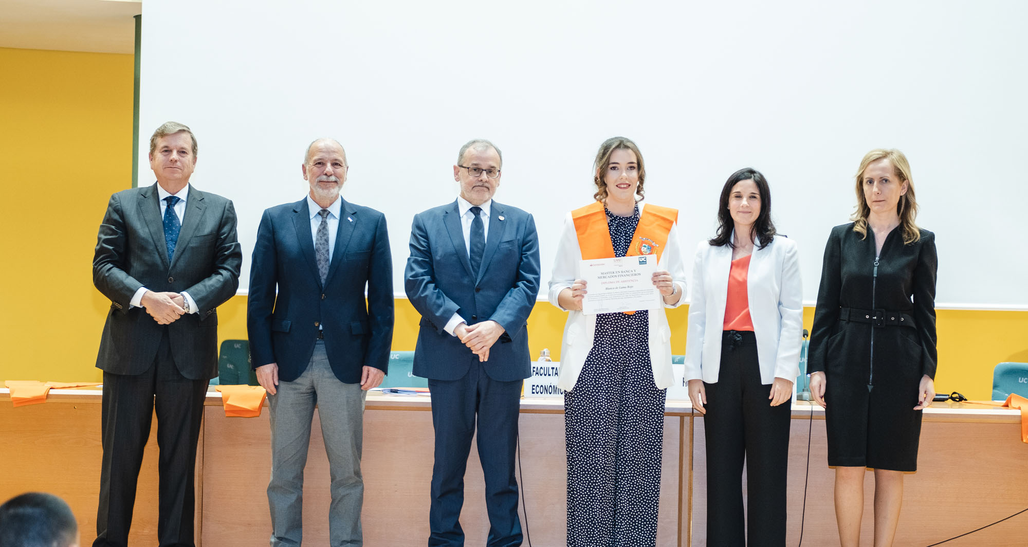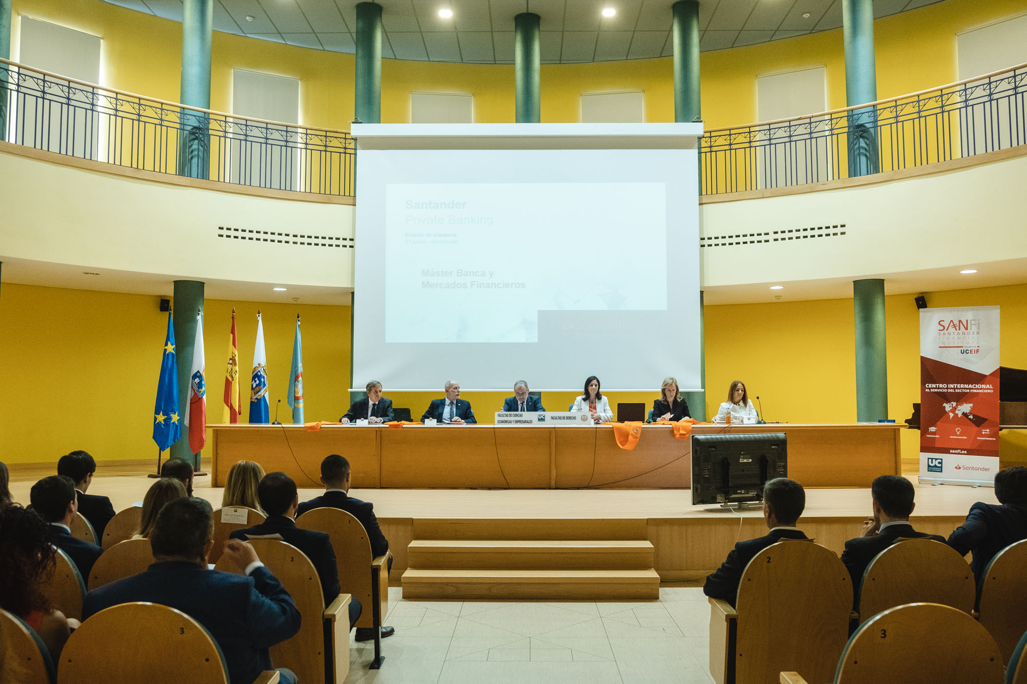 El acto estuvo presidido por el rector de la Universidad de Cantabria y presidente de la Fundación UCEIF, Ángel Pazos, y contó Adela Martín, Executive Vice-President y directora de Banca Privada de Santander España para la lección de fin de curso sobre “Santander Banca Privada: posición competitiva, modelo de asesoramiento y transformación digital”. También asistieron Francisco Javier Martínez, director general de la Fundación UCEIF y SANFI, Consuelo Arranz, vicerrectora de estudiantes y emprendimiento de la UC, Belén Díaz, directora académica de SANFI, Rocío Vielva, directora territorial de Banco Santander en Cantabria y Asturias y Carlos Hazas, Executive Vice-President y director territorial institucional Cantabria y Asturias, entre otros.
