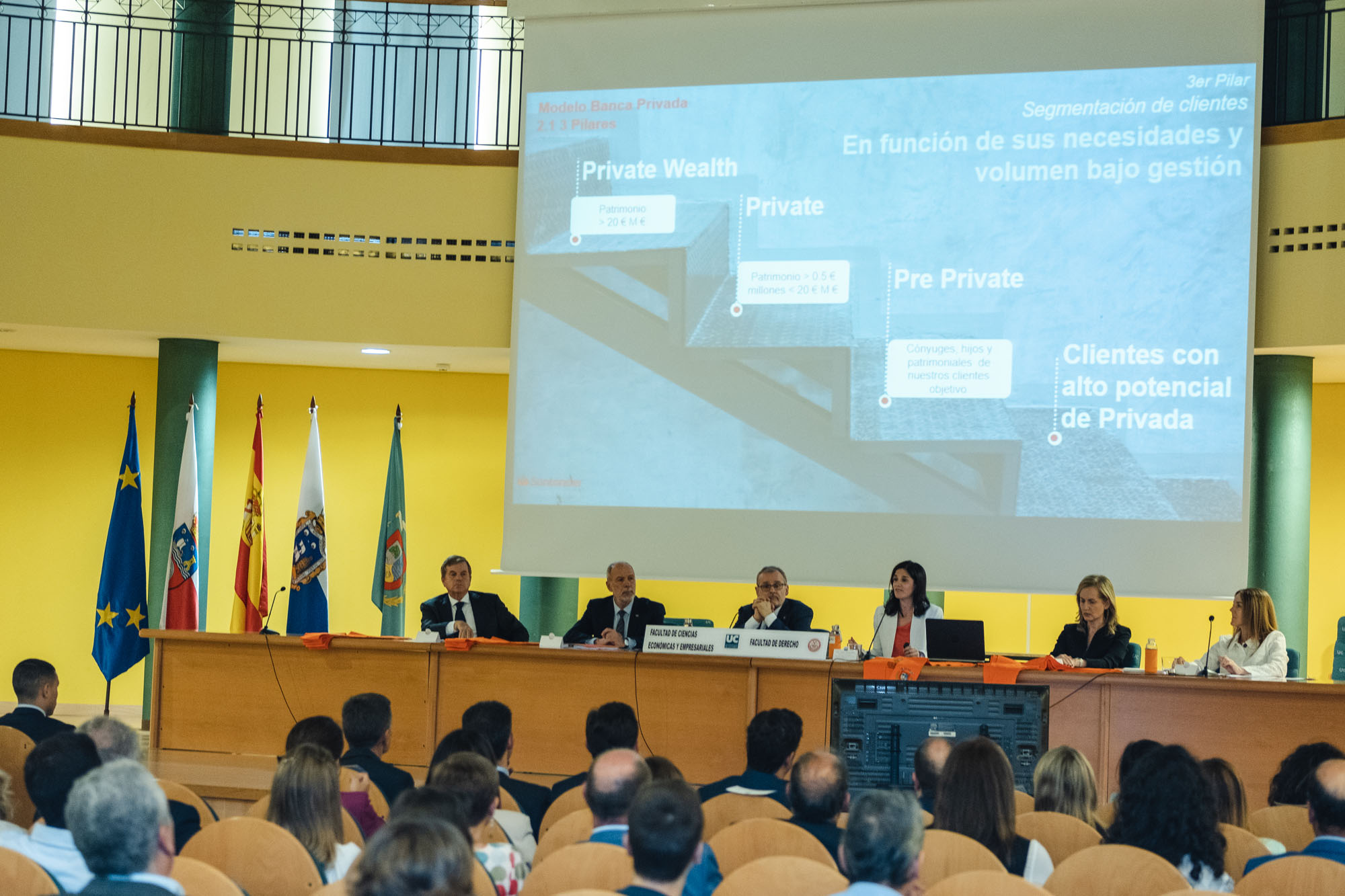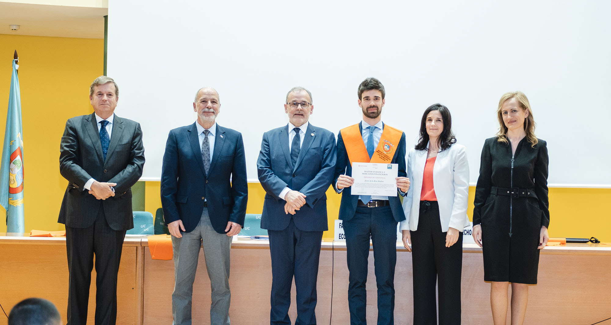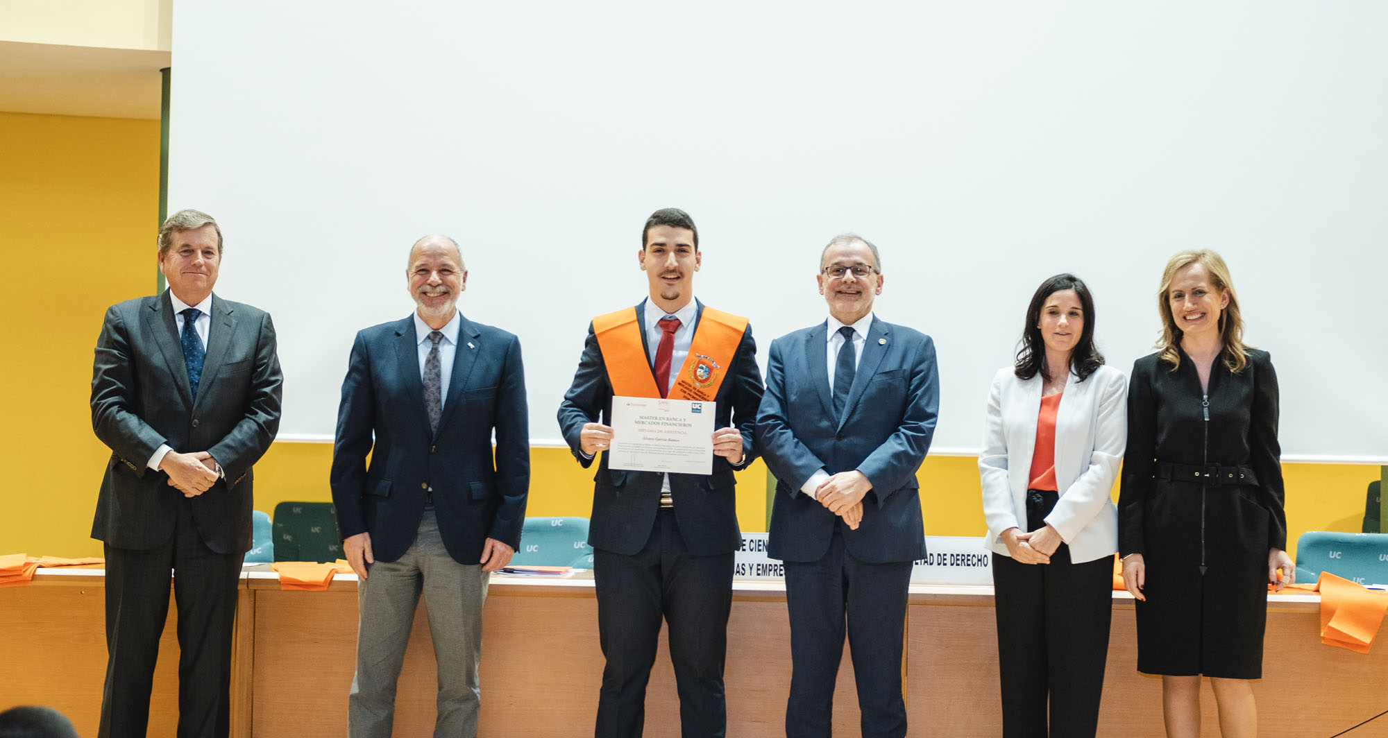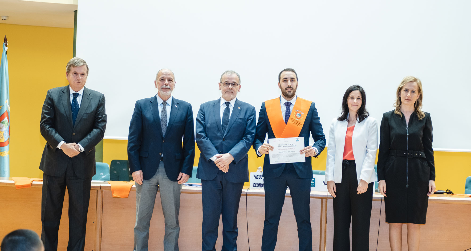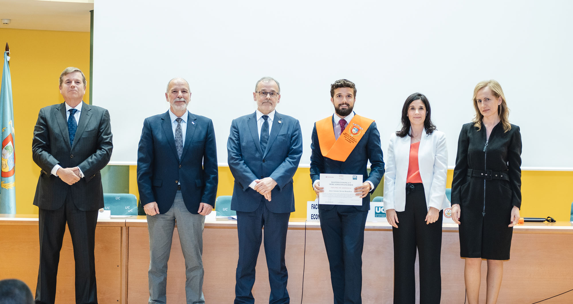 El acto estuvo presidido por el rector de la Universidad de Cantabria y presidente de la Fundación UCEIF, Ángel Pazos, y contó Adela Martín, Executive Vice-President y directora de Banca Privada de Santander España para la lección de fin de curso sobre “Santander Banca Privada: posición competitiva, modelo de asesoramiento y transformación digital”. También asistieron Francisco Javier Martínez, director general de la Fundación UCEIF y SANFI, Consuelo Arranz, vicerrectora de estudiantes y emprendimiento de la UC, Belén Díaz, directora académica de SANFI, Rocío Vielva, directora territorial de Banco Santander en Cantabria y Asturias y Carlos Hazas, Executive Vice-President y director territorial institucional Cantabria y Asturias, entre otros.