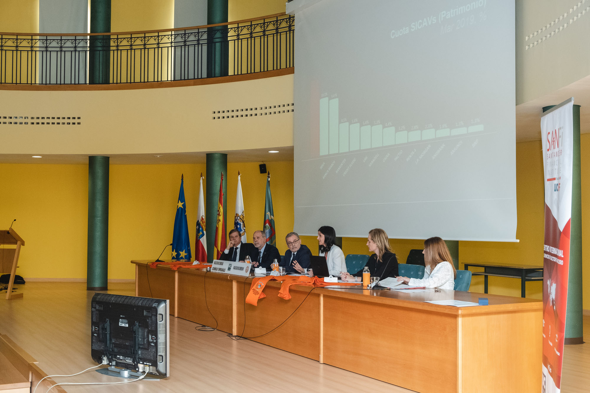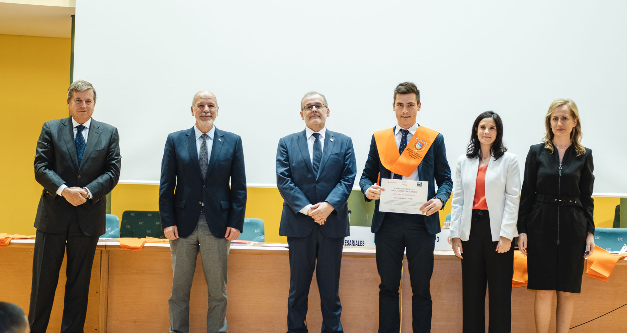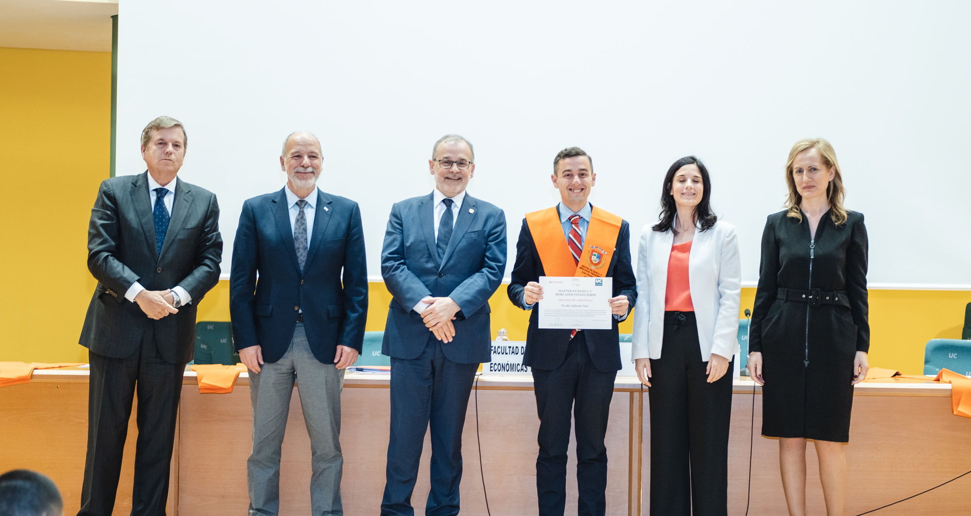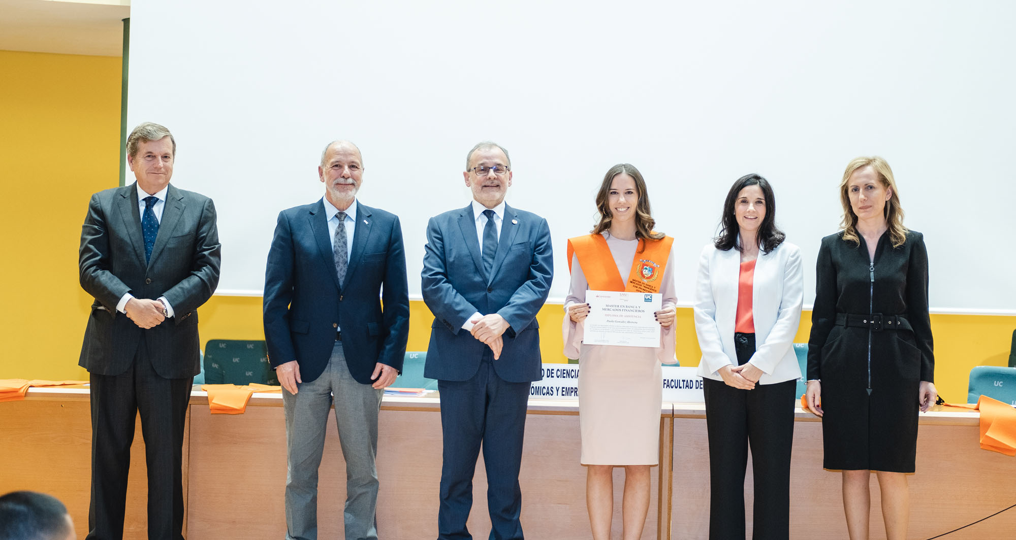El acto estuvo presidido por el rector de la Universidad de Cantabria y presidente de la Fundación UCEIF, Ángel Pazos, y contó Adela Martín, Executive Vice-President y directora de Banca Privada de Santander España para la lección de fin de curso sobre “Santander Banca Privada: posición competitiva, modelo de asesoramiento y transformación digital”. También asistieron Francisco Javier Martínez, director general de la Fundación UCEIF y SANFI, Consuelo Arranz, vicerrectora de estudiantes y emprendimiento de la UC, Belén Díaz, directora académica de SANFI, Rocío Vielva, directora territorial de Banco Santander en Cantabria y Asturias y Carlos Hazas, Executive Vice-President y director territorial institucional Cantabria y Asturias, entre otros.