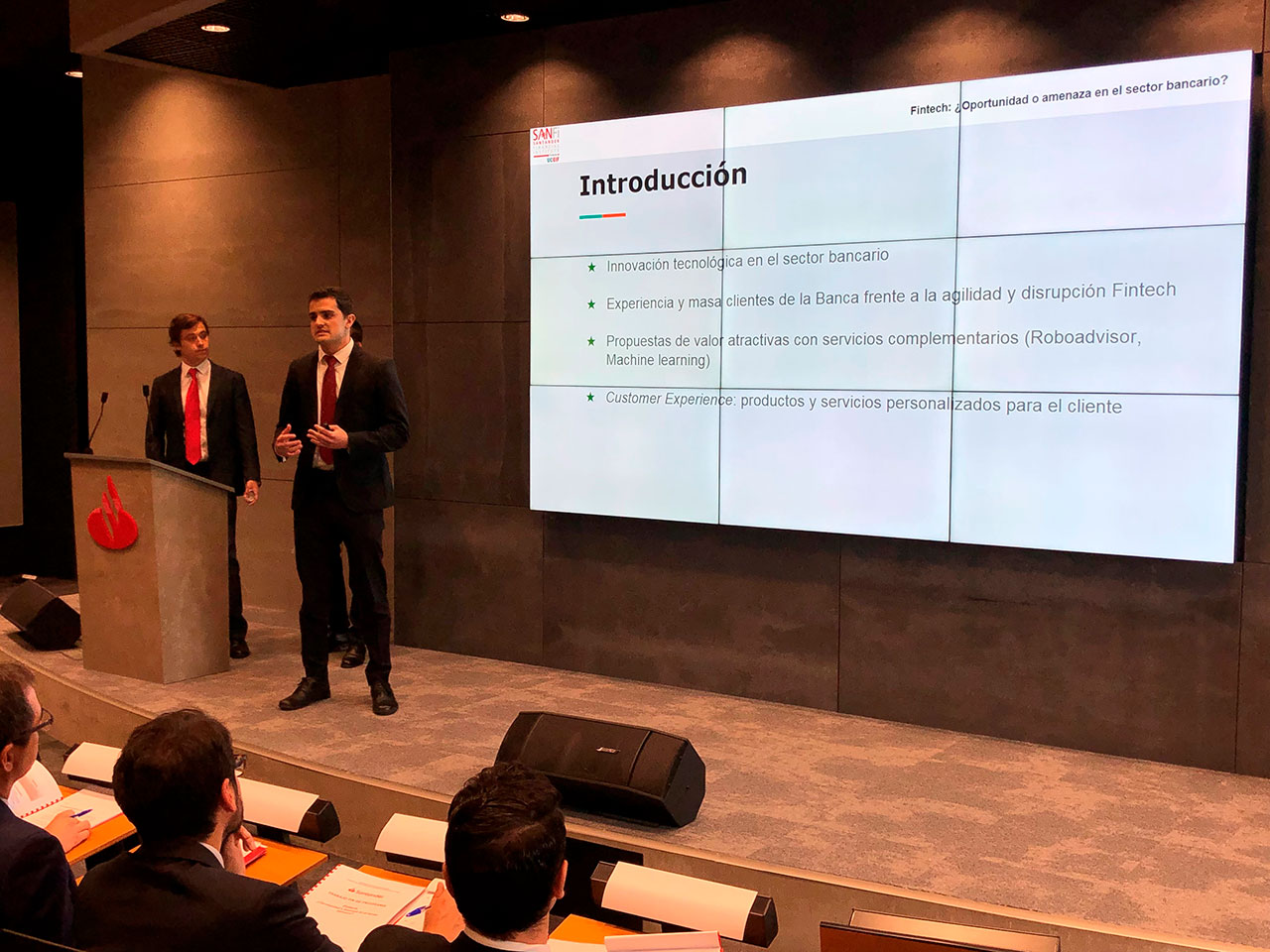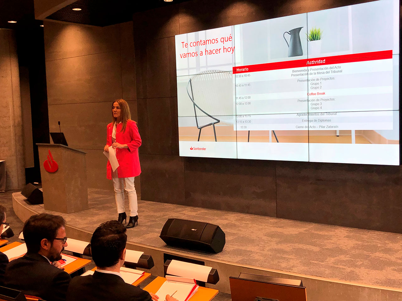 Al acto de clausura asistió Belén Díaz, directora académica de SANFI y Pilar Zataraín, directora de área de Auditoría Interna de Banco Santander. En primer lugar, Belén Díaz, agradeció a los alumnos “su compromiso y constancia en este año de formación”. Al mismo tiempo, que comentó “el compromiso que SANFI y Banco Santander tienen en una formación de calidad y que se traduce en proyectos formativos como este”. Por su parte, Pilar Zataraín, remarcó “la importancia de estos programas formativos para el desarrollo profesional”. Del mismo modo, remarcó la necesidad “de estar siempre en continuo aprendizaje”.